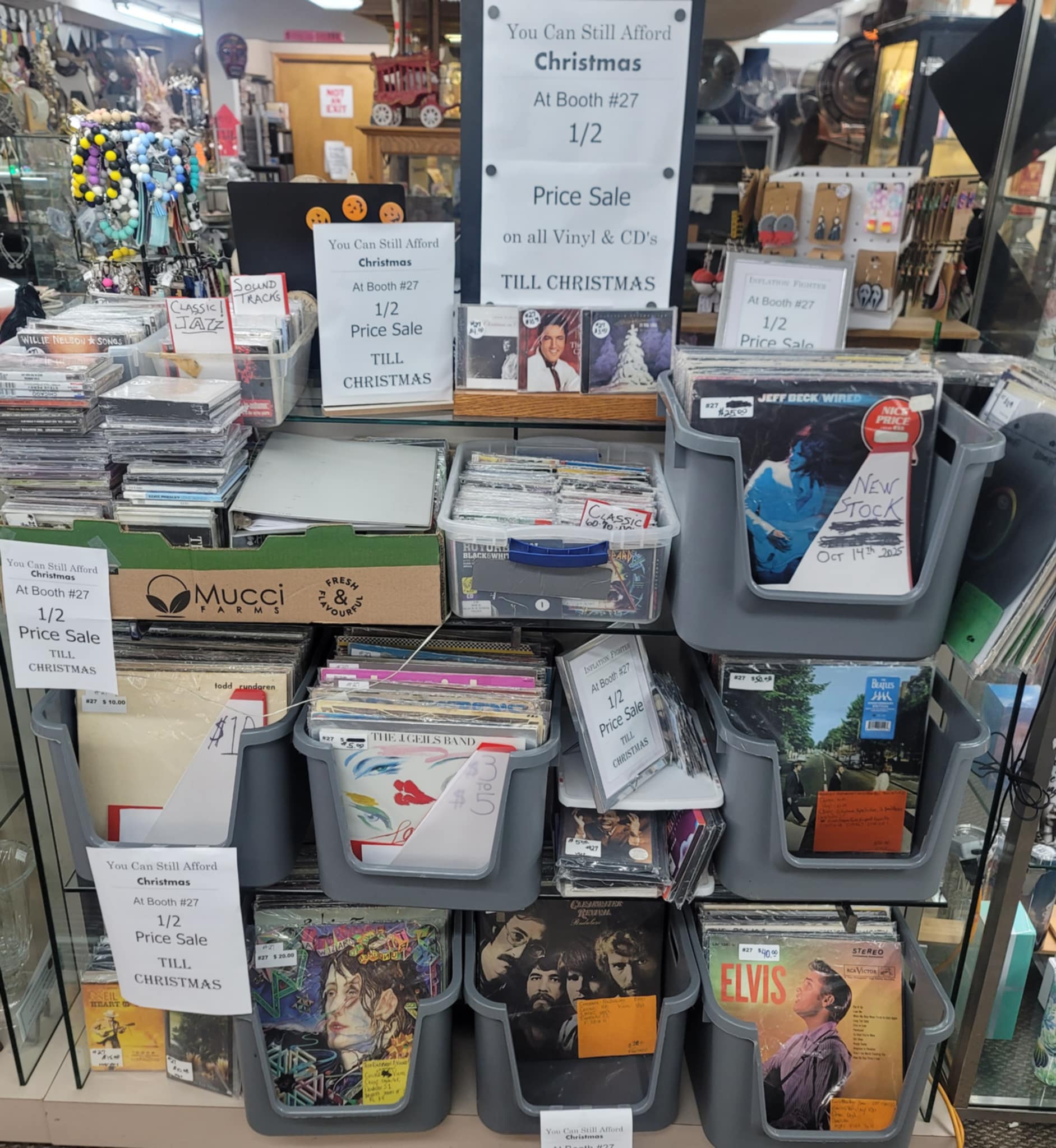 Booths #27 and #70 have cranked the dial up with 50% off a huge selection of records and CDs. Vintage vibes, modern beats, and everything between.