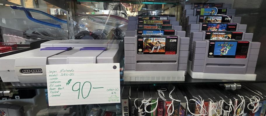 Step into our dedicated game room featuring vintage and modern gaming systems, plus a great selection of associated games. From classic consoles to newer favorites, including handheld systems, there’s something here for every level of player.